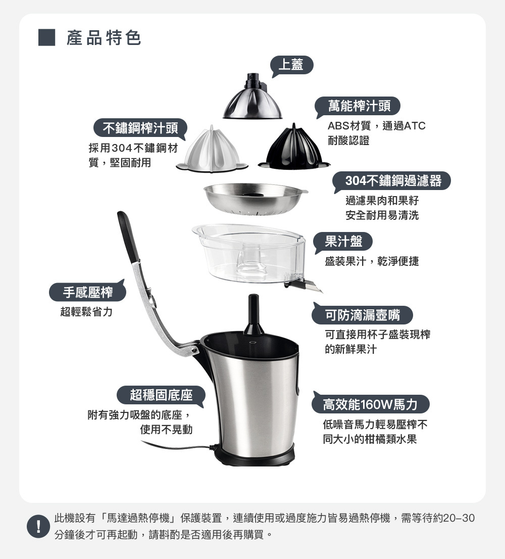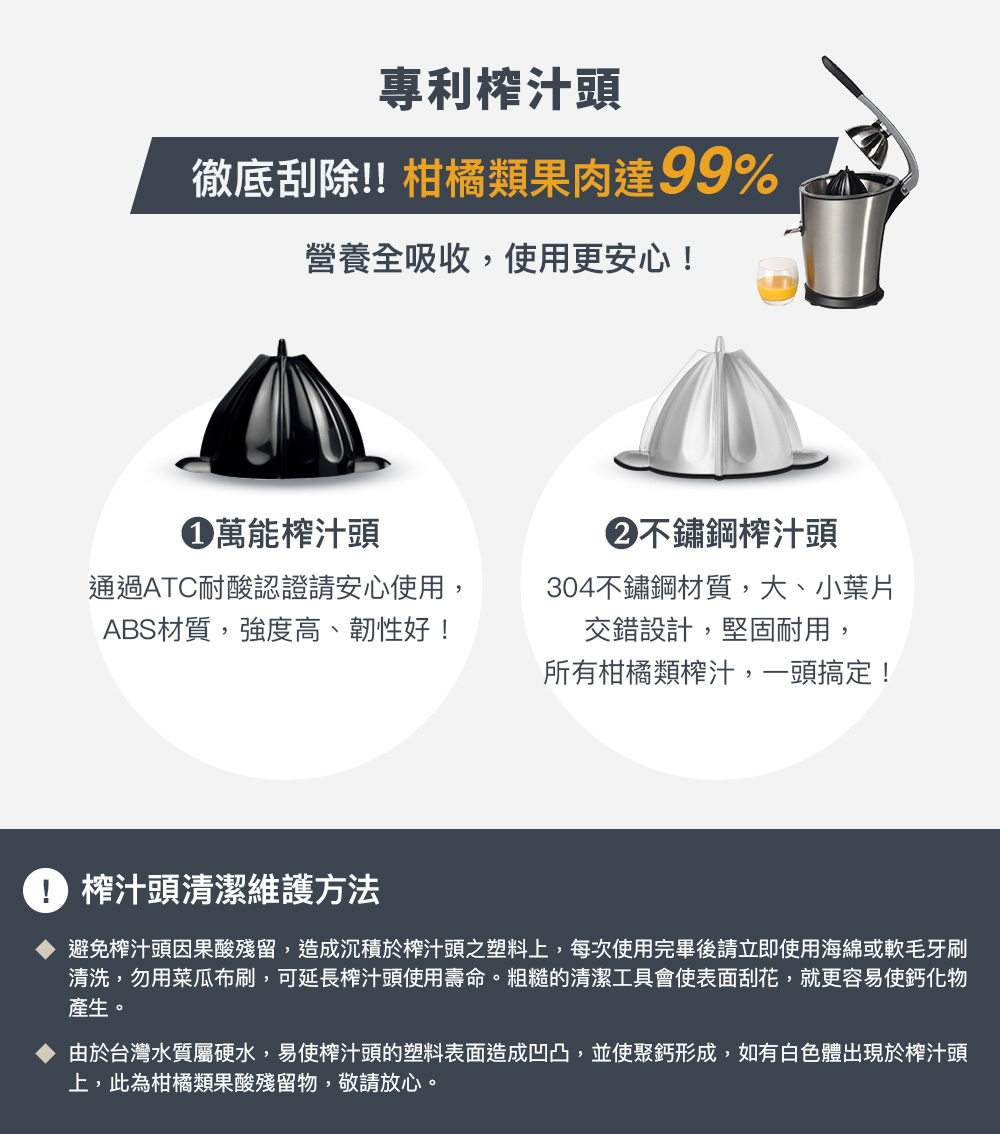 .商品內容:主機、ABS榨汁頭1個、金屬榨汁頭1個