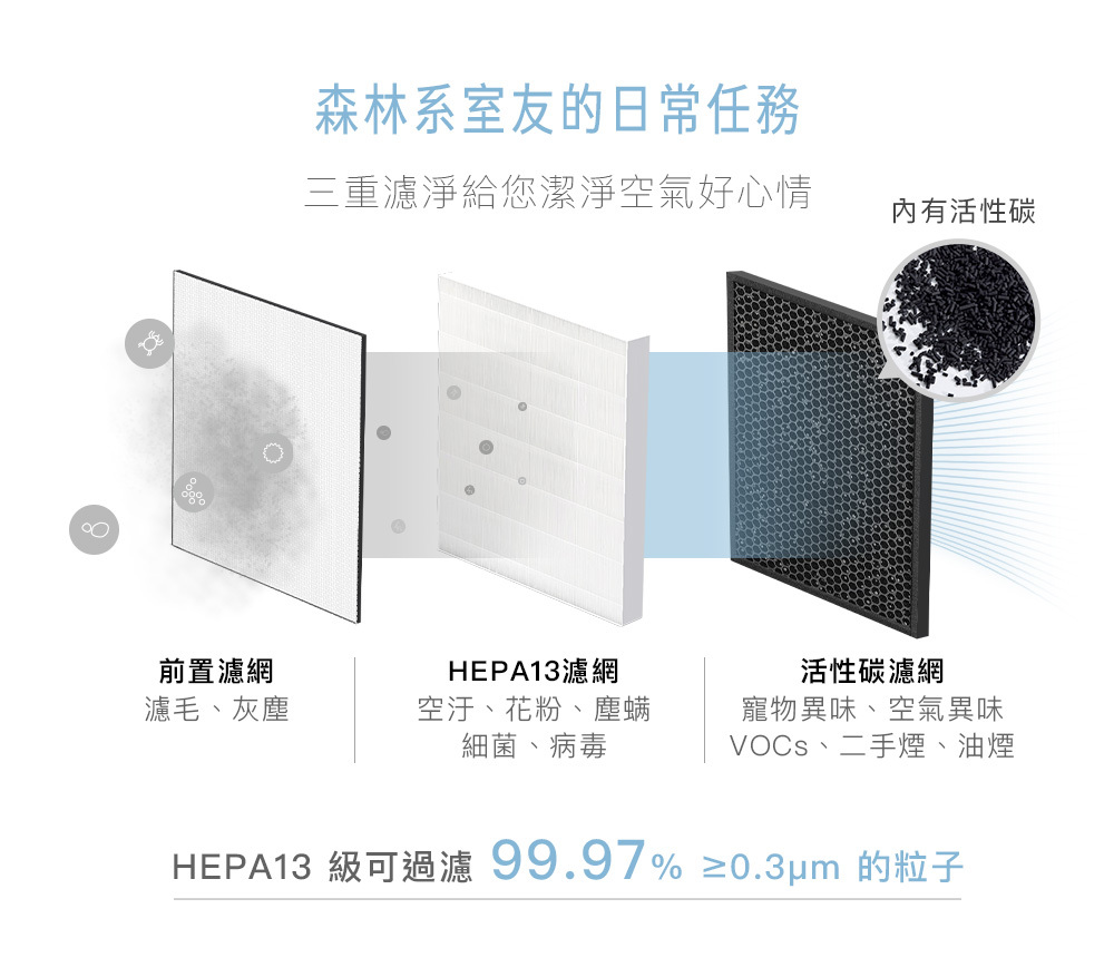 HEPA13等級:有效過濾pm2.5微粒99.97%