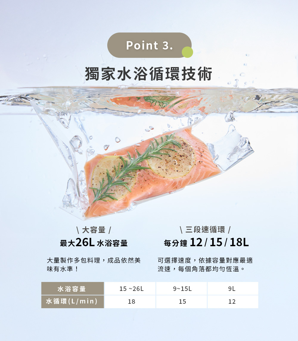.3段水流 3種水循環選擇:每分鐘12/15/18L
