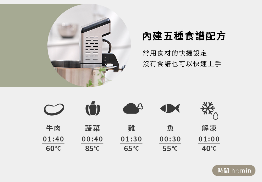 .內建5種食譜配方