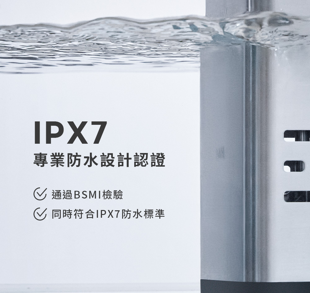 .通過IPX7防水認證