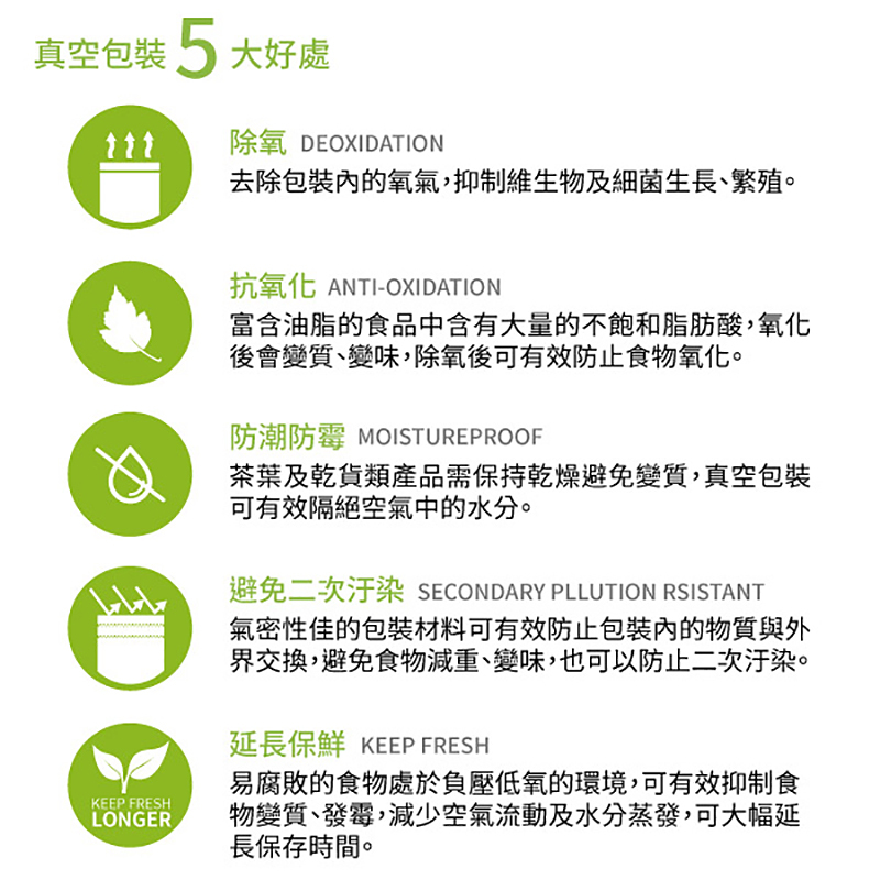 .真空包裝有效維持食物鮮度