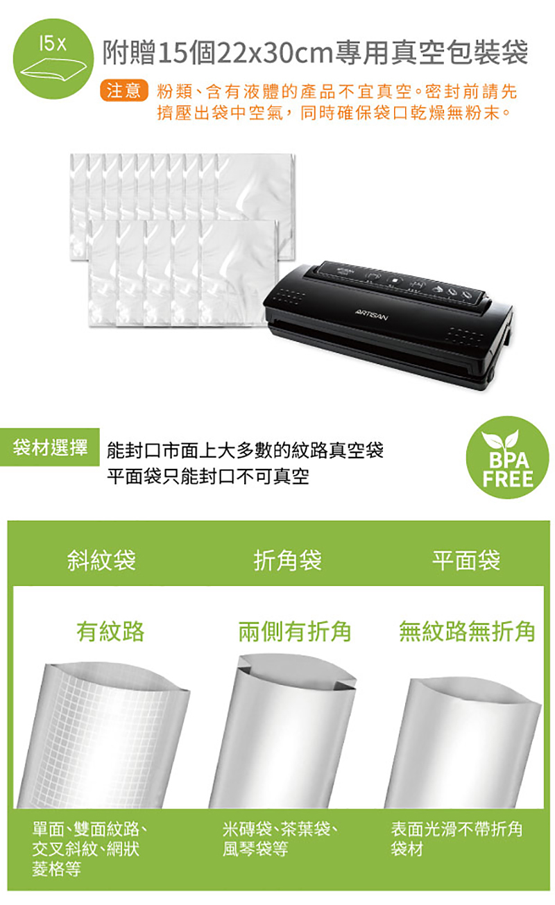 .附贈真空包裝袋15個(22x30cm)