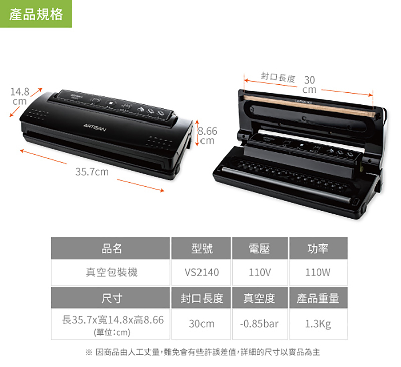 --此款需使用「有紋路」的真空包裝袋才能抽真空--